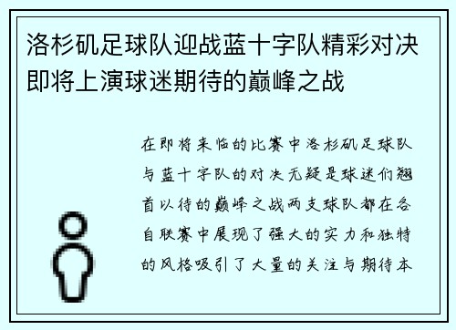 洛杉矶足球队迎战蓝十字队精彩对决即将上演球迷期待的巅峰之战